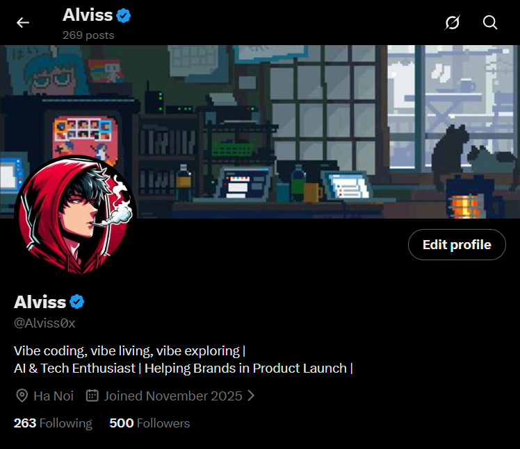 š Bonus Fun fact: Alviss signed up for X and hit 1,000 followers in about 22 days. One of his tweets about VS Code blew up with ~35,000 views and 410 likes. Heās posted 1,266 times and actively invites builders to connect.