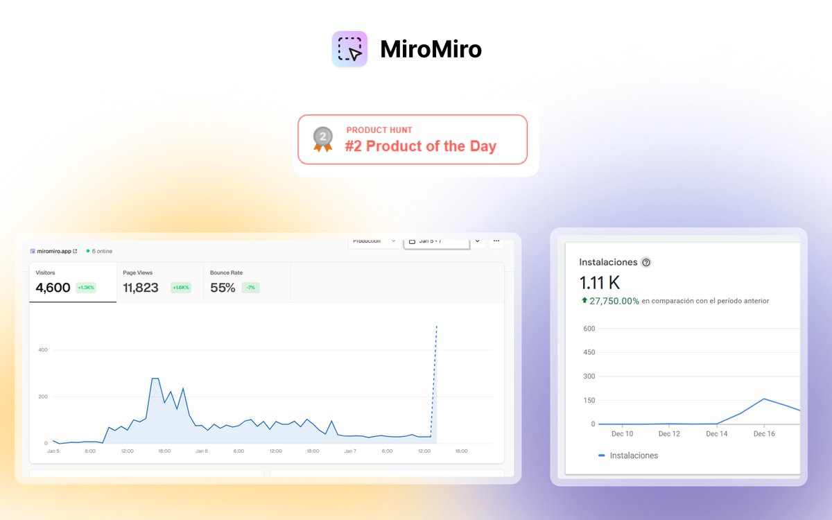 MiroMiro.app - 8k+ installs · #2 Product Hunt