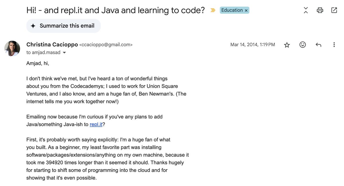 I first (cold!) emailed @amasad in March 2014. Gmail tells me we've swapped 291 messages since then, so it was especially fun to talk to him in @TrustVanta's Frameworks for Growth series.