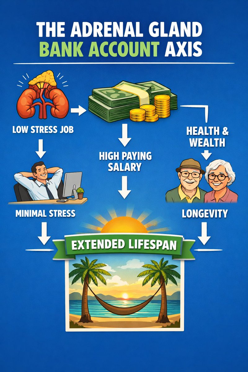 Sounds like a meme but a great majority of longevity benefits come from this adrenal gland-bank account axis