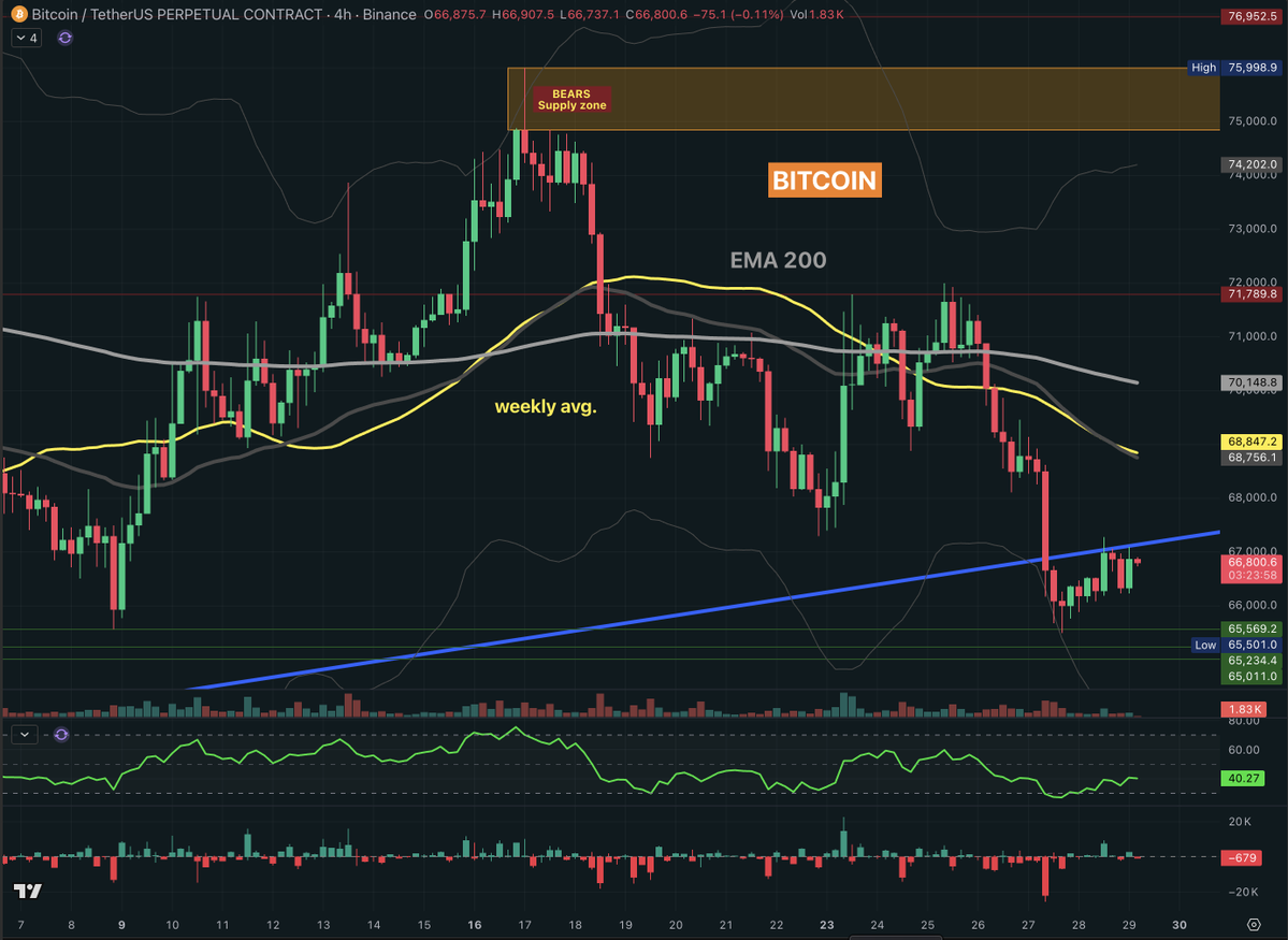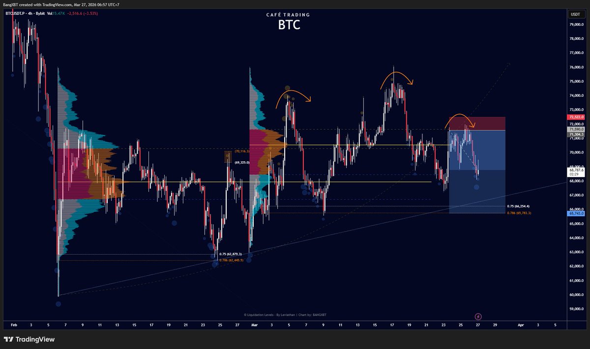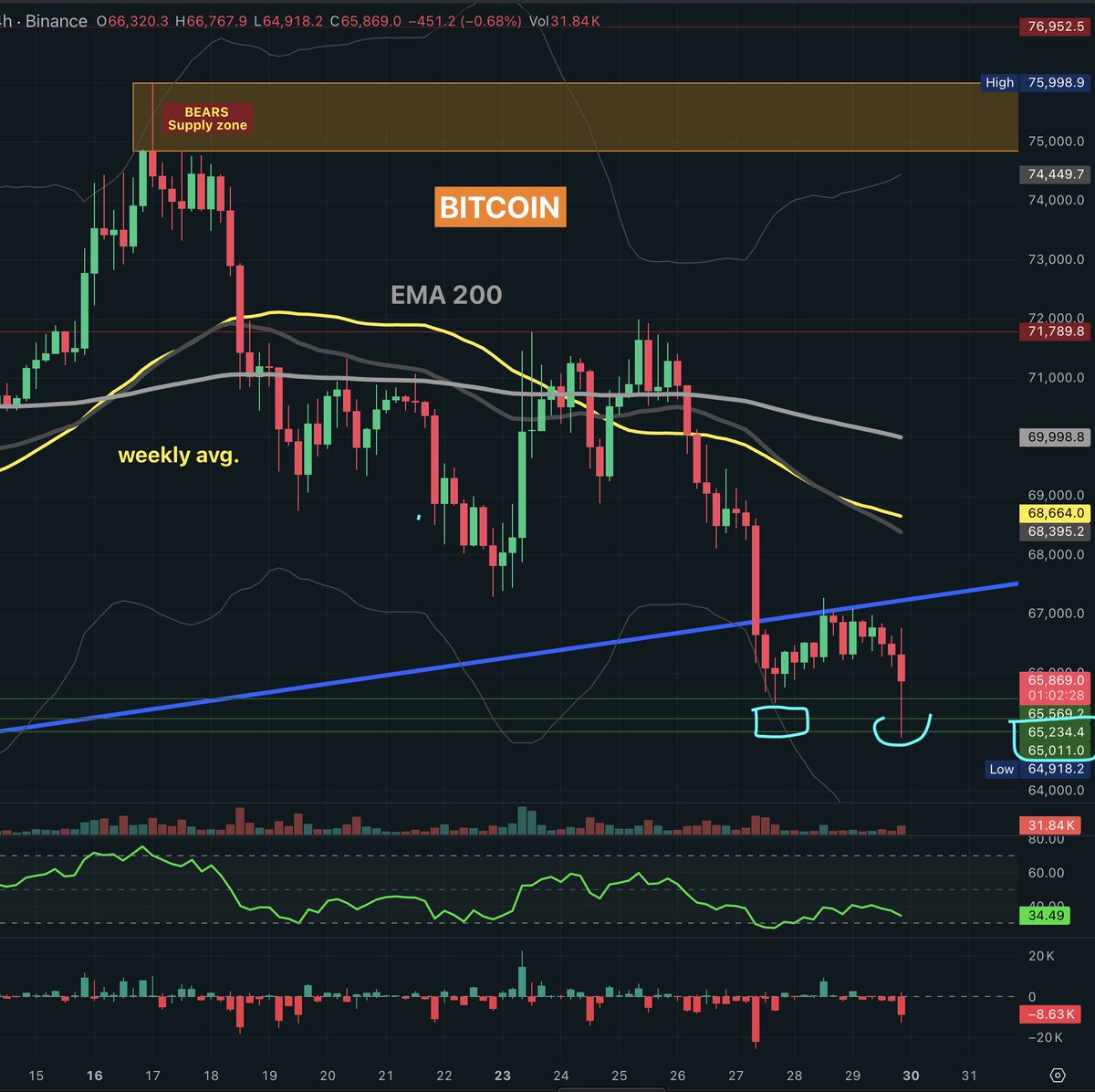 $BTC has formed another bear flag. A daily close below the $66,000 level could push Bitcoin to new lows.
