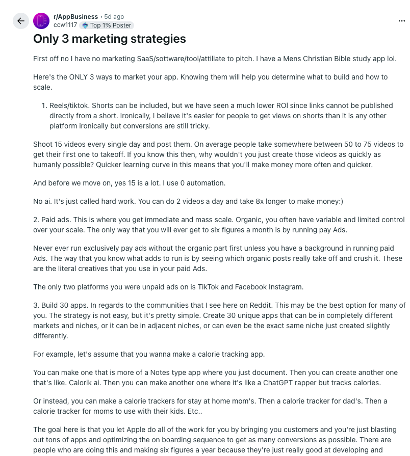 This Reddit user broke down the ONLY 3 ways to market your app