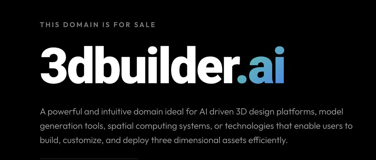 3DBuilder.ai is now available - a strong, intuitive name for startups in generative design, digital twins, 3D modeling, and spatial computing.